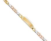 14K Tri Color Gold Stamp Figaro Link ID Bracelet – 8″
