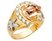 14K Tri Color Gold Horse Shoe Men’s Cubic Zirconia Ring
