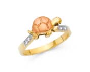 14K Two Tone Gold Cubic Zirconia Fancy Turtle Ring
