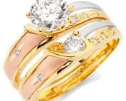 14K Tri Color Cubic Zirconia Engagement Ring and Ladies Wedding Band set