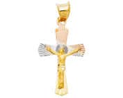 14K Tri Color Gold diamond cut Crucifix Jesus Cross Stamp Religious