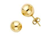 14K Yellow Gold 8mm Stud Ball Earrings w/Push