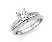 14K White Gold Cubic Zirconia Engagement Ring and Wedding Band Set