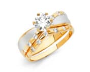 14K Two Tone Gold Cubic Zirconia Engagement Ring and Wedding Band Set