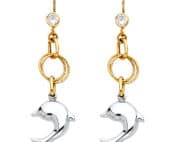 14K Two Tone Gold Hollow Hanging Dolphin Earrings