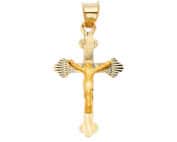 14K Yellow Gold Religious Crucifix Stamp Pendant