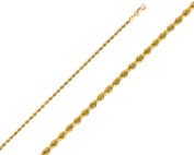 14K Yellow Gold 2.5mm Solid Rope diamond cut Chain