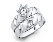 14K White Gold Cubic Zirconia Engagement Ring and Wedding Band Set