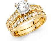 14K Yellow Gold Cubic Zirconia Engagement Ring and Wedding Band Set