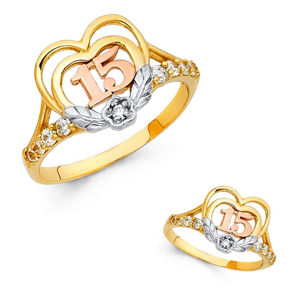 14K Tri Color Gold 15 Years Cubic Zirconia Ring