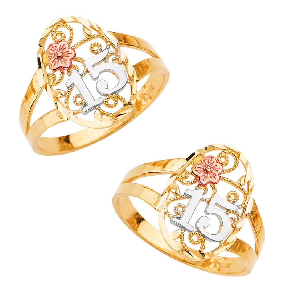 14K Tri Color Gold 15 Years Ring