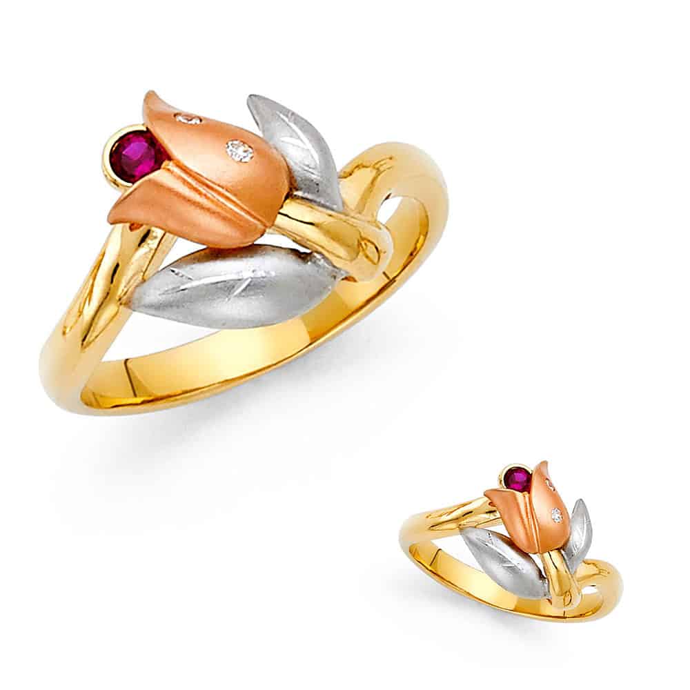 14K Tri Color Gold Cubic Zirconia Fancy Flower Ring