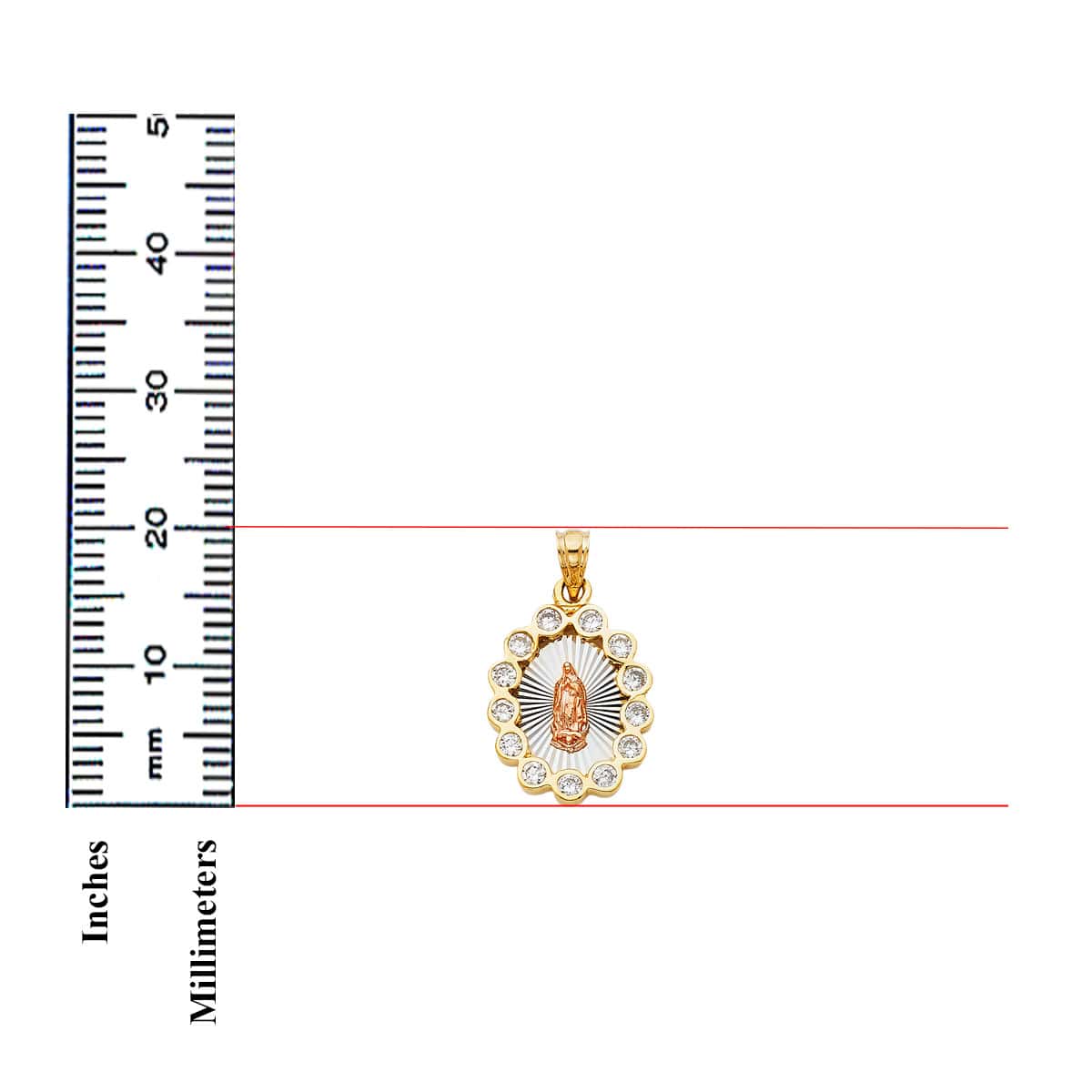 14K Tri Color Gold Cubic Zirconia Religious Guadalupe Pendant