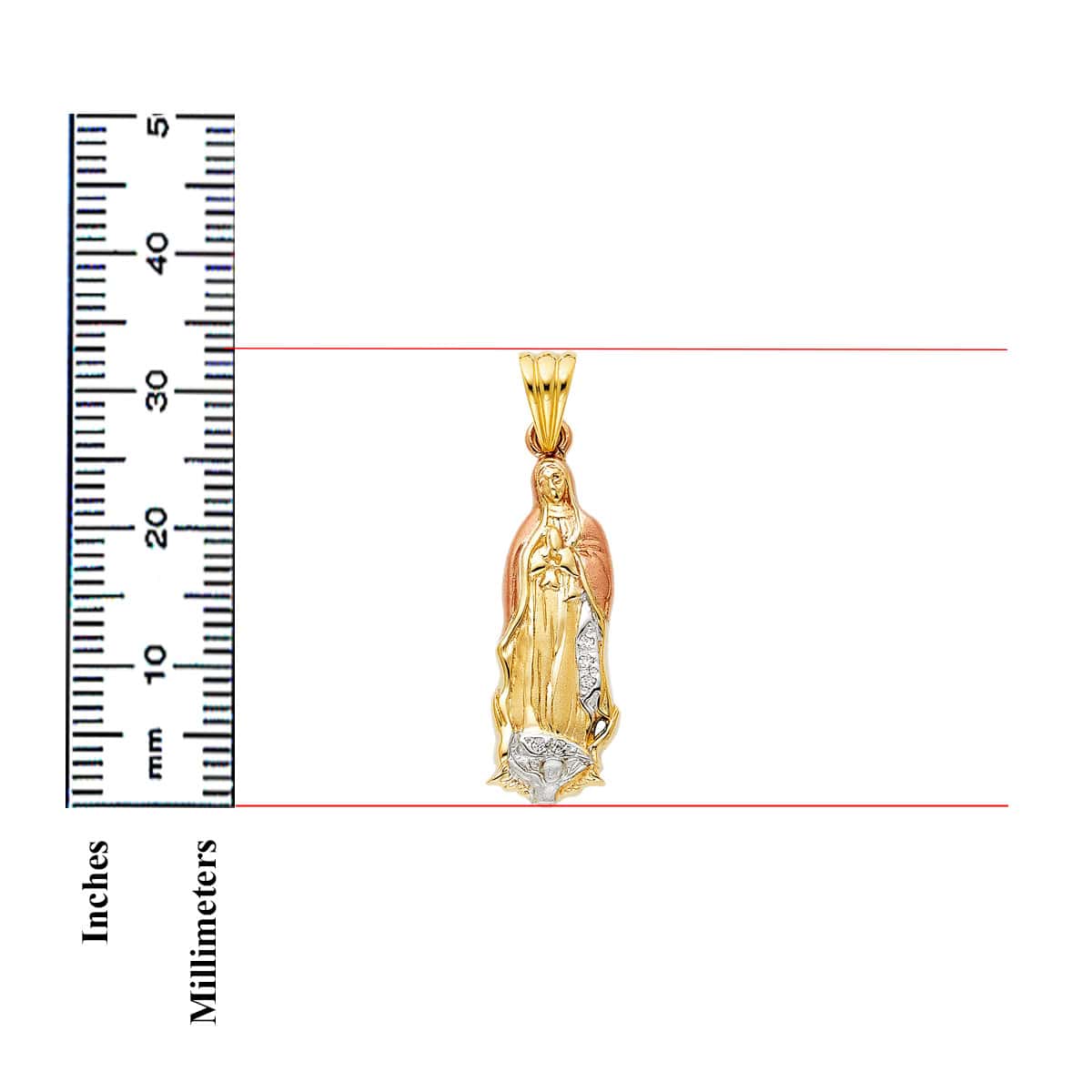 14K Tri Color Gold Cubic Zirconia Religious Guadalupe Pendant