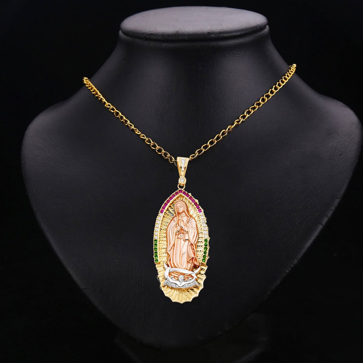 14K Tri Color Gold Cubic Zirconia Religious Guadalupe Pendant