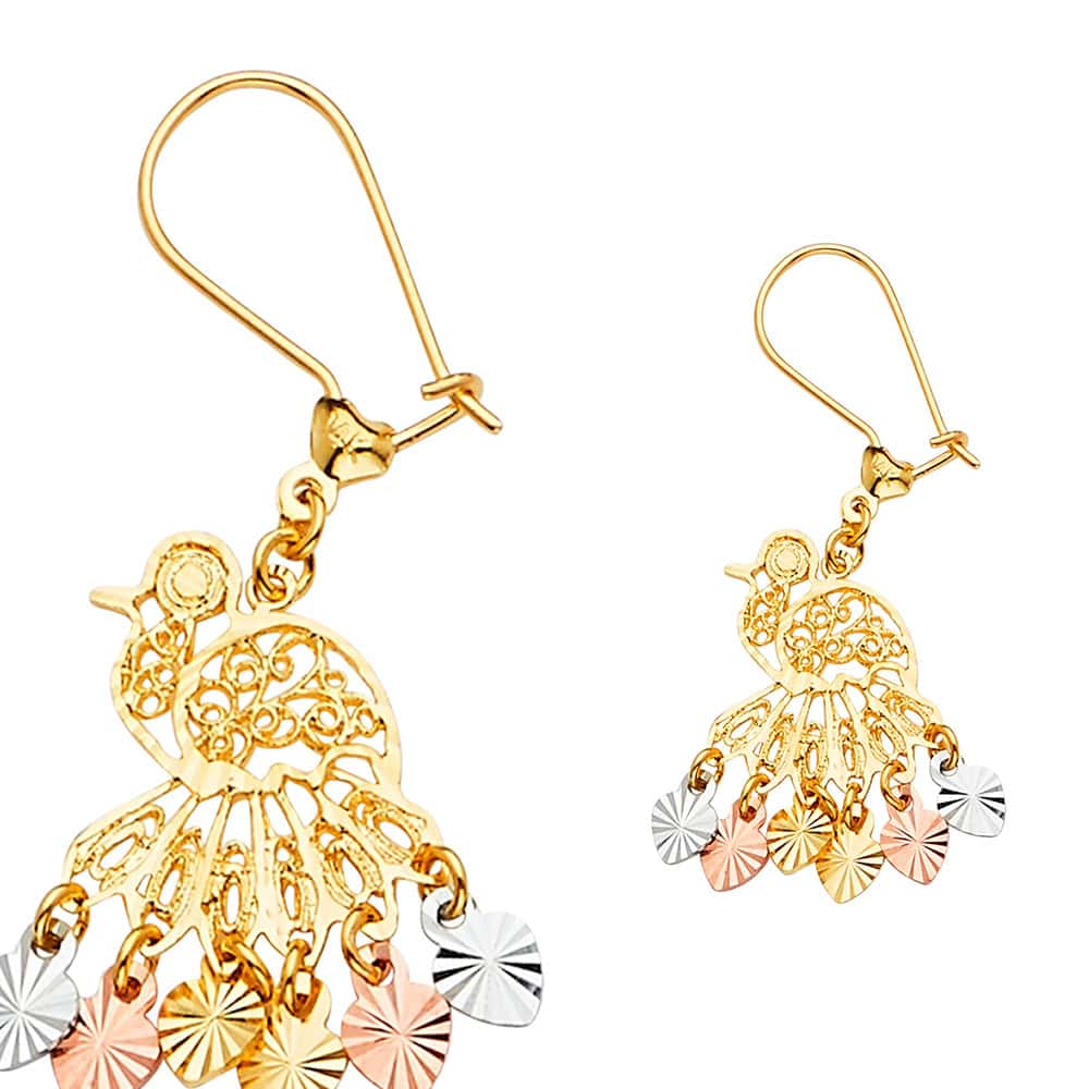 14K Tri Color Gold Diamond Cut Channeldelier Hanging Earrings