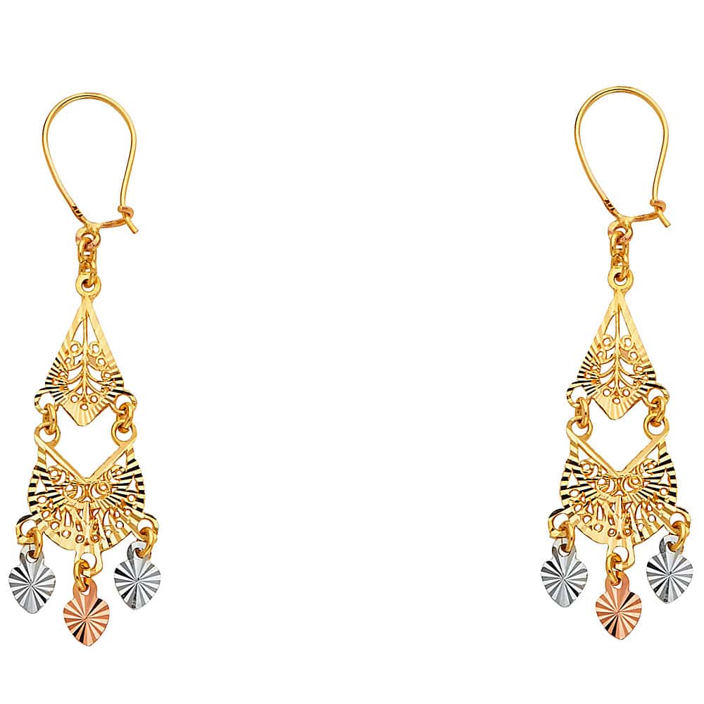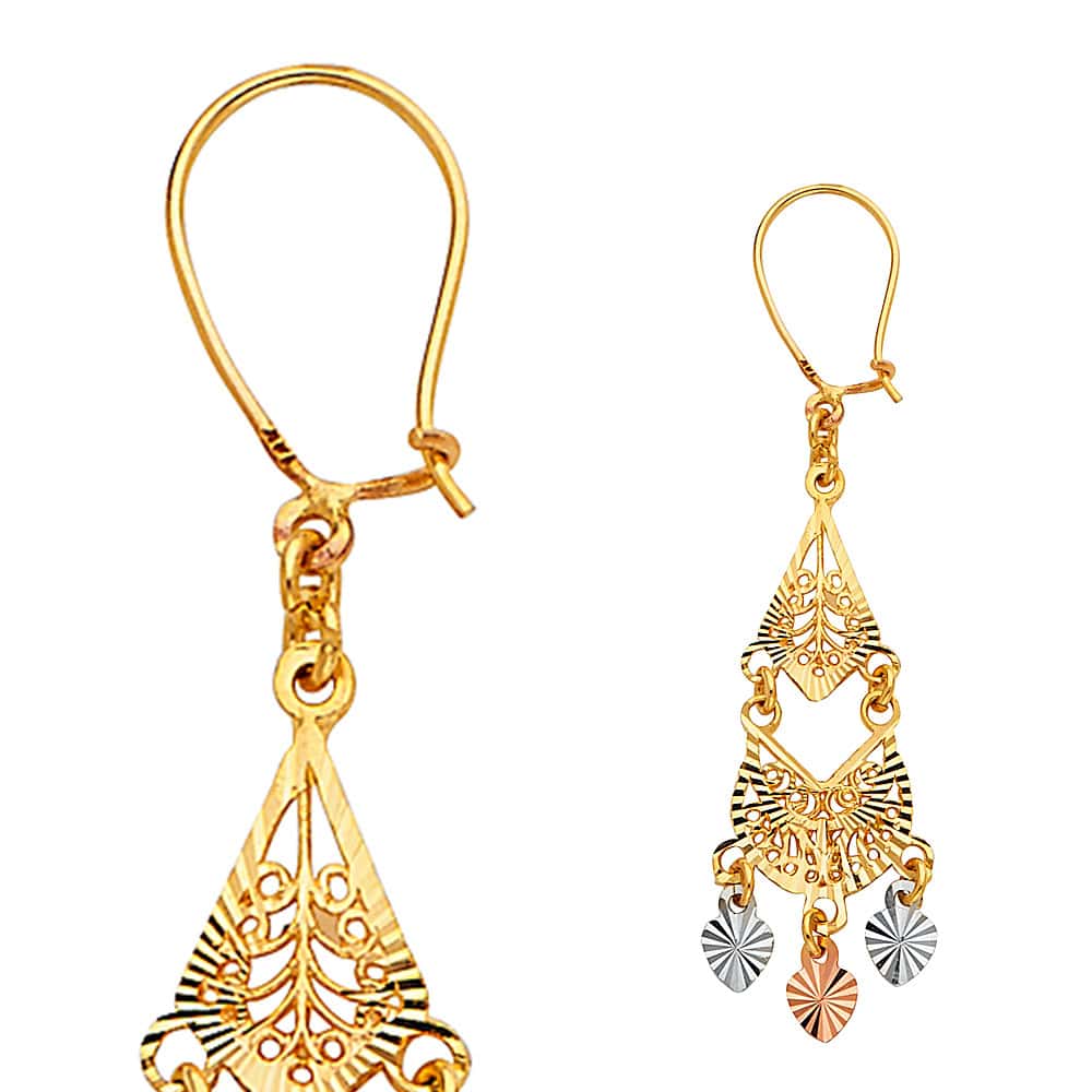 14K Tri Color Gold Diamond Cut Channeldelier Hanging Earrings