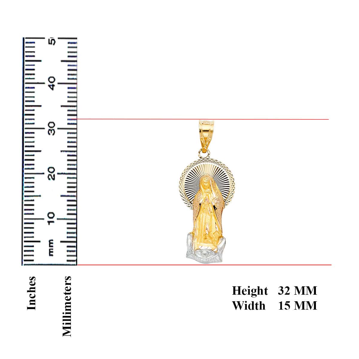 14K Tri Color Gold Diamond Cut Guadlupe Stamp Religious Pendant