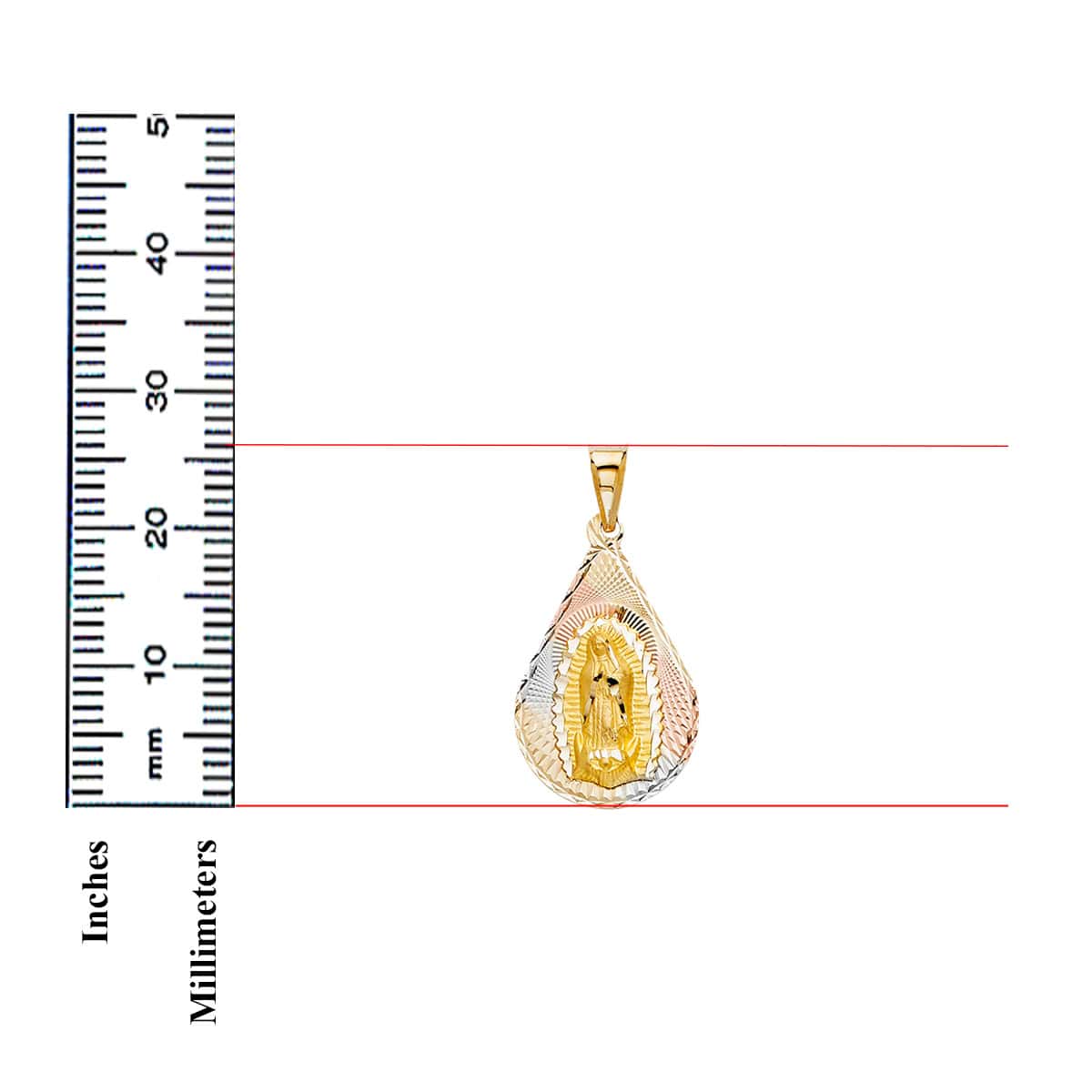 14K Tri Color Gold diamond cut Guadlupe Stamp Religious Pendant