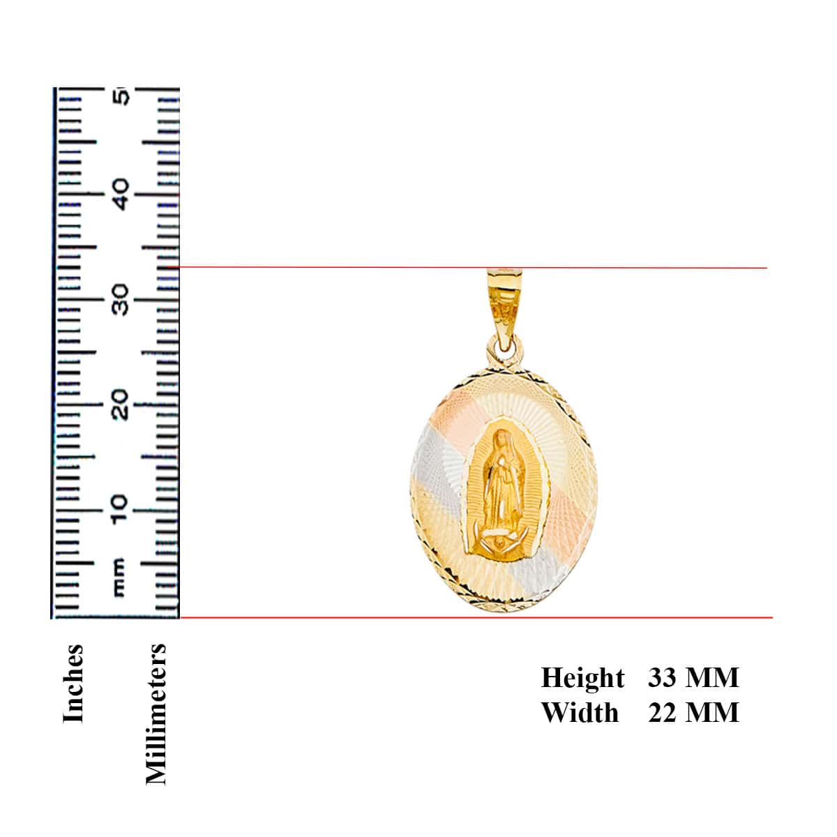 14K Tri Color Gold diamond cut Guadlupe Stamp Religious Pendant