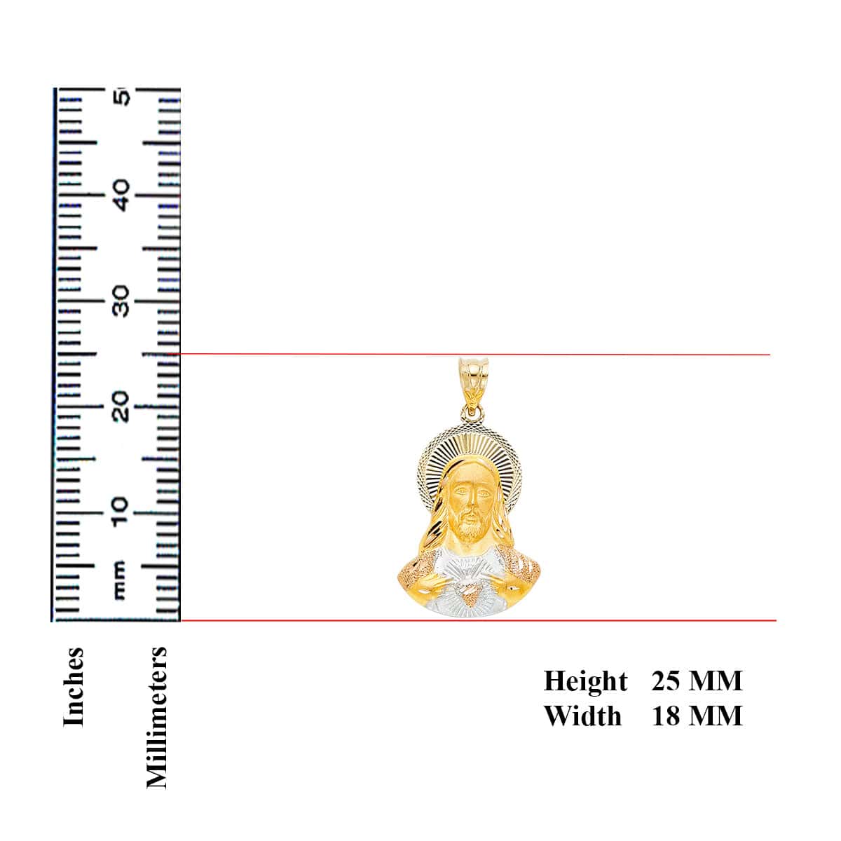 14K Tri Color Gold Diamond Cut Jesus Stamp Religious Pendant