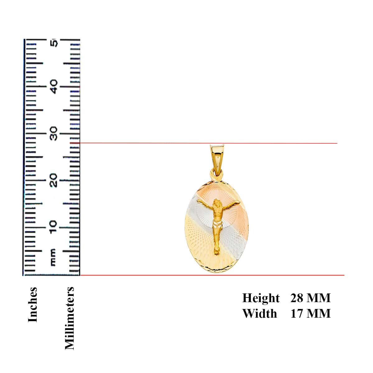14K Tri Color Gold diamond cut Jesus Stamp Religious Pendant