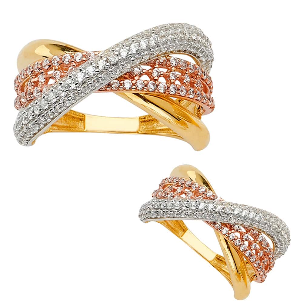 14K Tri Color Gold Fancy Cubic Zirconia Ring