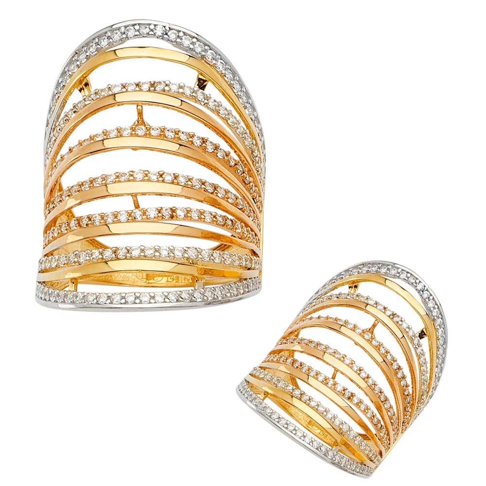 14K Tri Color Gold Fancy Cubic Zirconia Ring