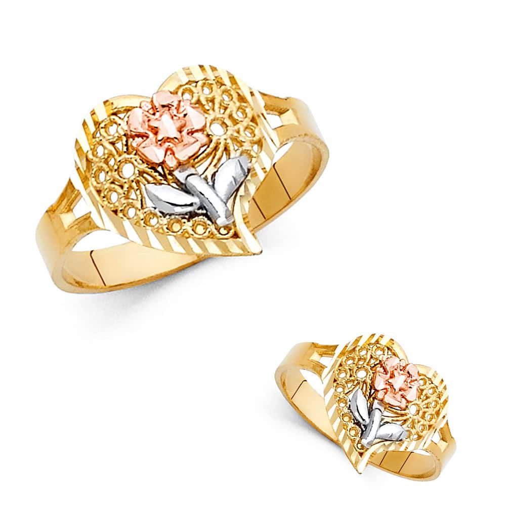 14K Tri Color Gold Fancy Flower Ring