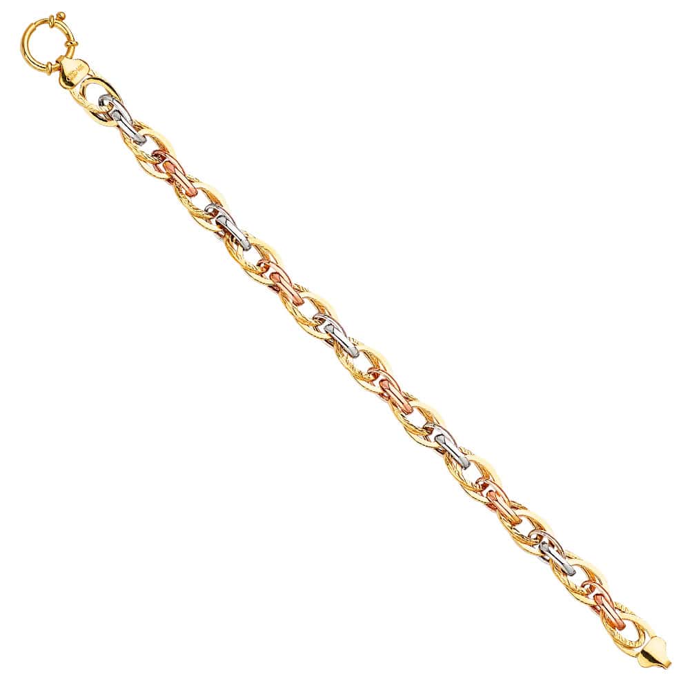 14K Tri Color Gold Fancy Hollow Bracelet – 7.5″