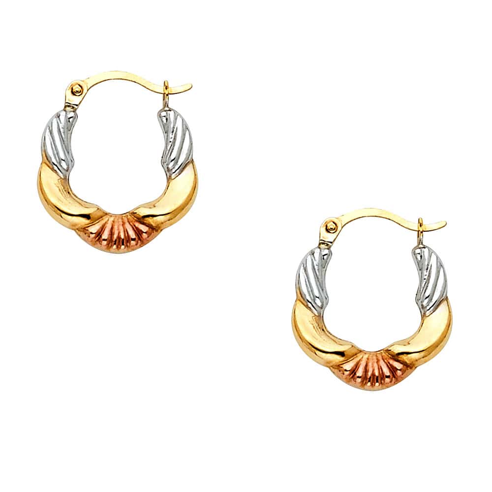 14K Tri Color Gold Fancy Hollow Hoop Earrings