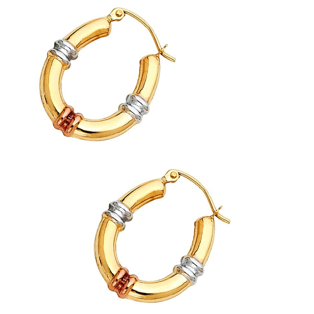 14K Tri Color Gold Fancy Hollow Hoop Earrings