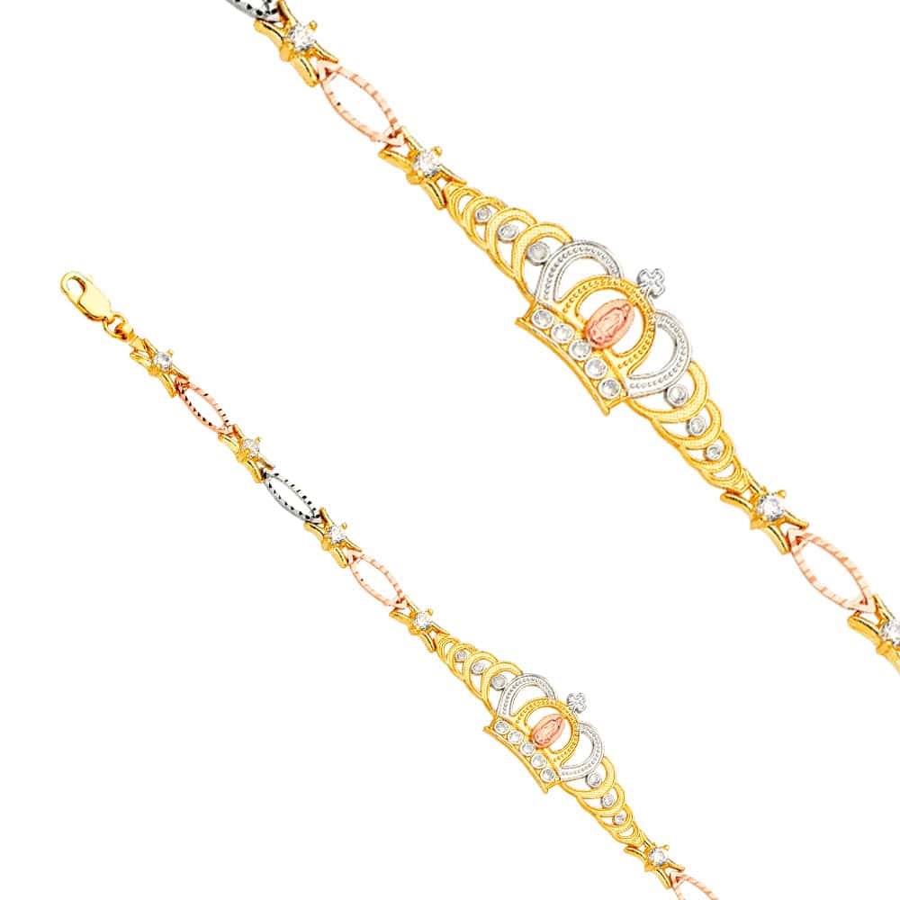 14K Tri Color Gold Guadalupe Crown Cubic Zirconia Bracelet – 7.5″