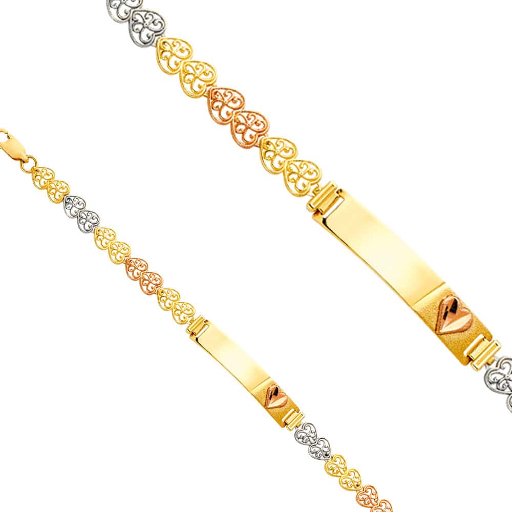 14K Tri Color Gold Heart Link Heart Baby ID Bracelet – 6″