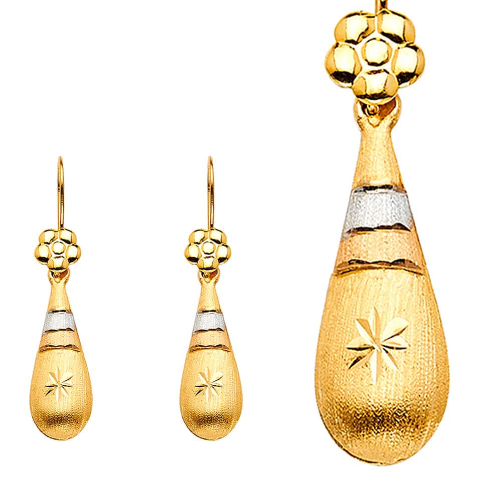 14K Tri Color Gold Hollow Teardrop Hanging Earrings