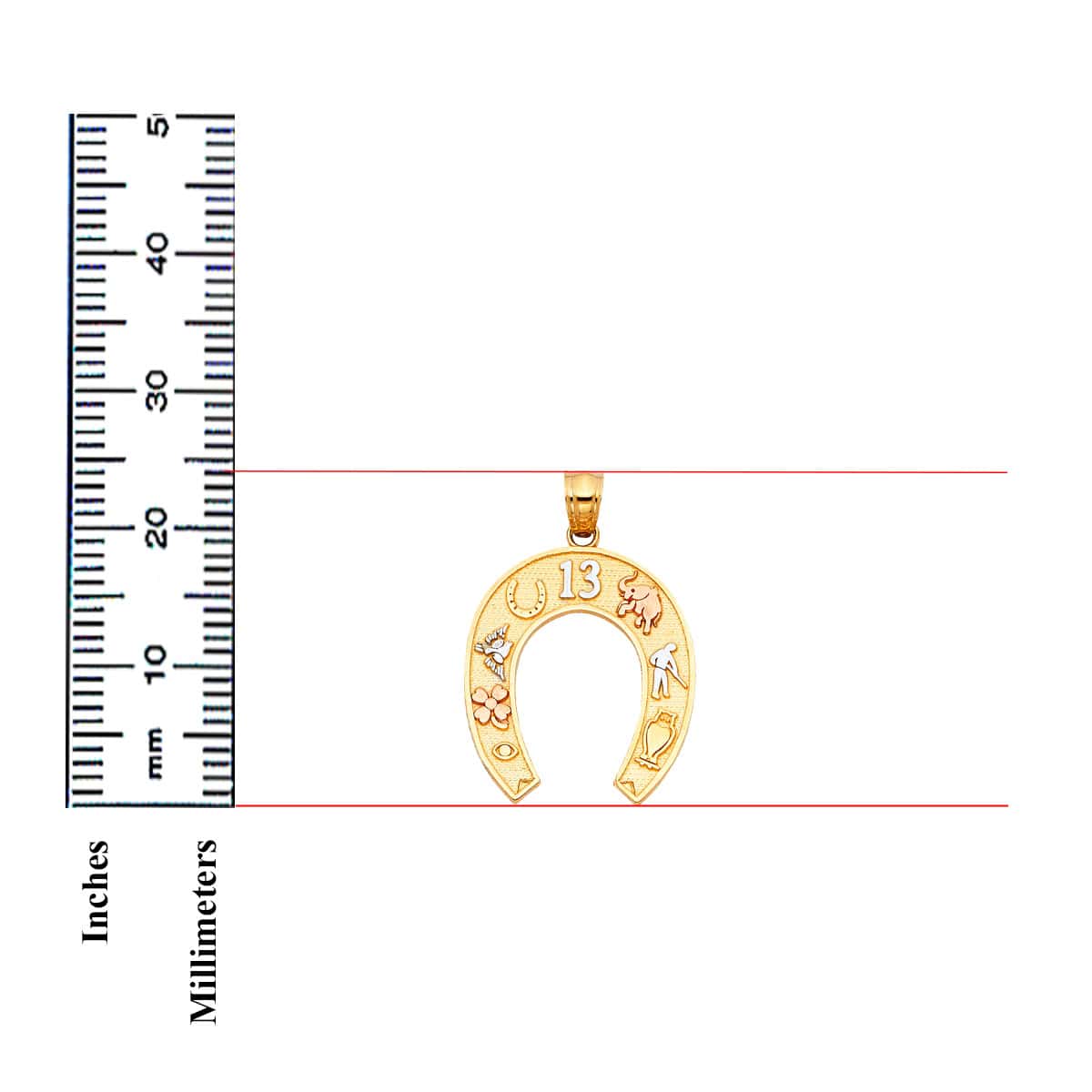 14K Tri Color Gold Lucky Horsehoe Pendant