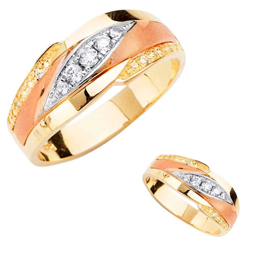 14K Tri Color Gold Men’s Cubic Zirconia Wedding Band