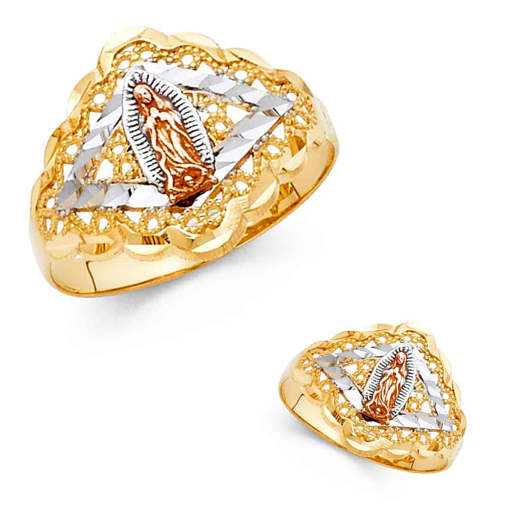 14K Tri Color Gold Our Lady of Guadalupe Ring