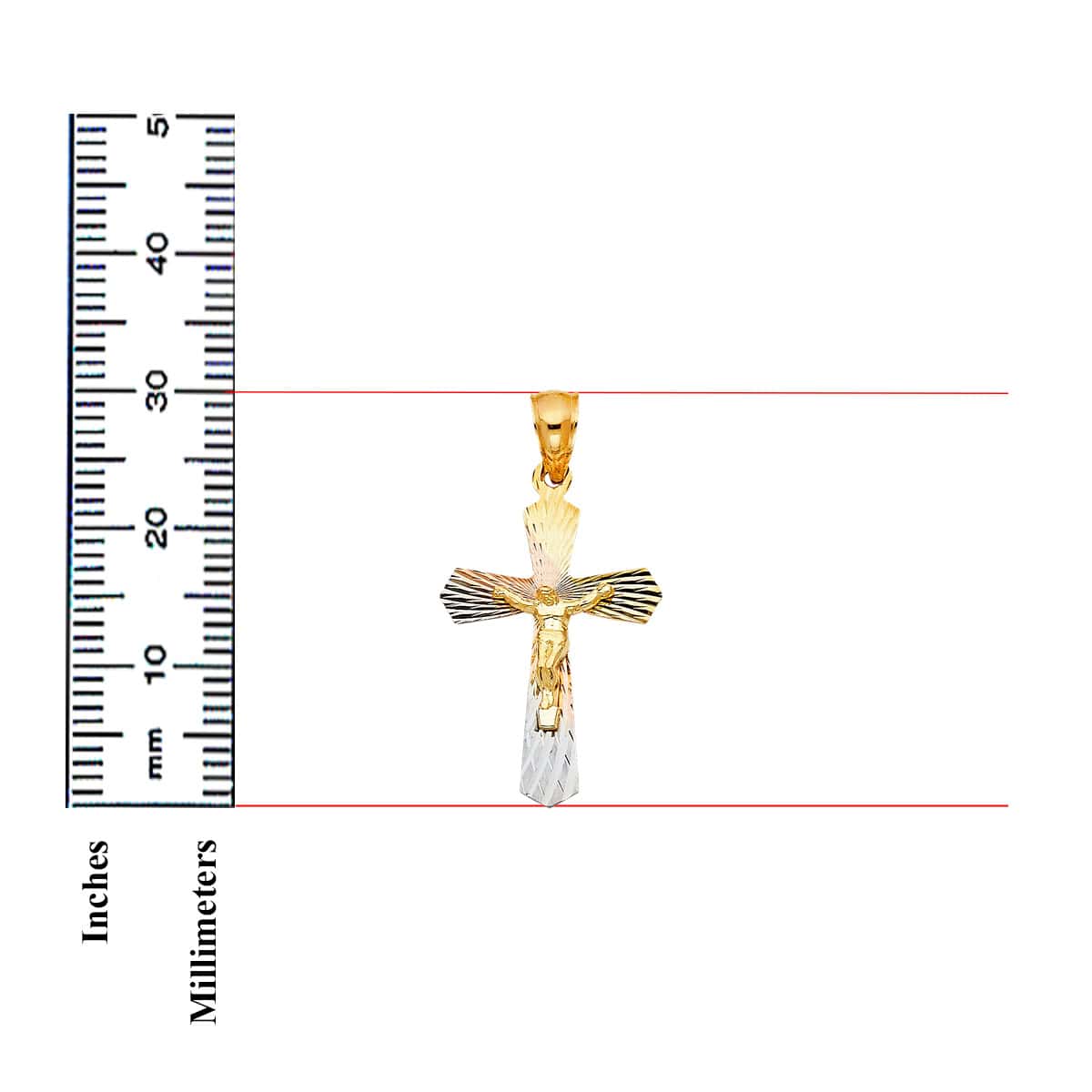 14K Tri Color Gold Religious Crucifix Stamp Pendant
