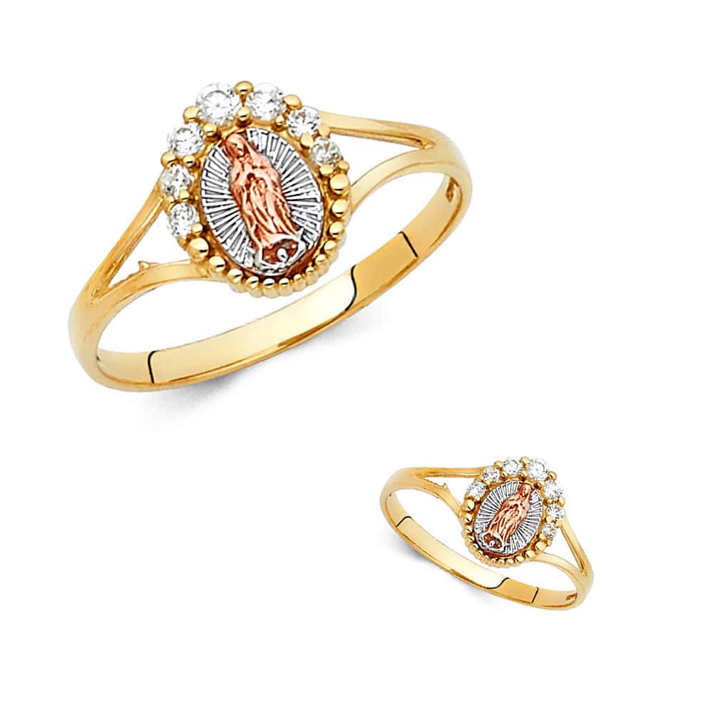 14K Tri Color Gold Religious Cubic Zirconia Ring