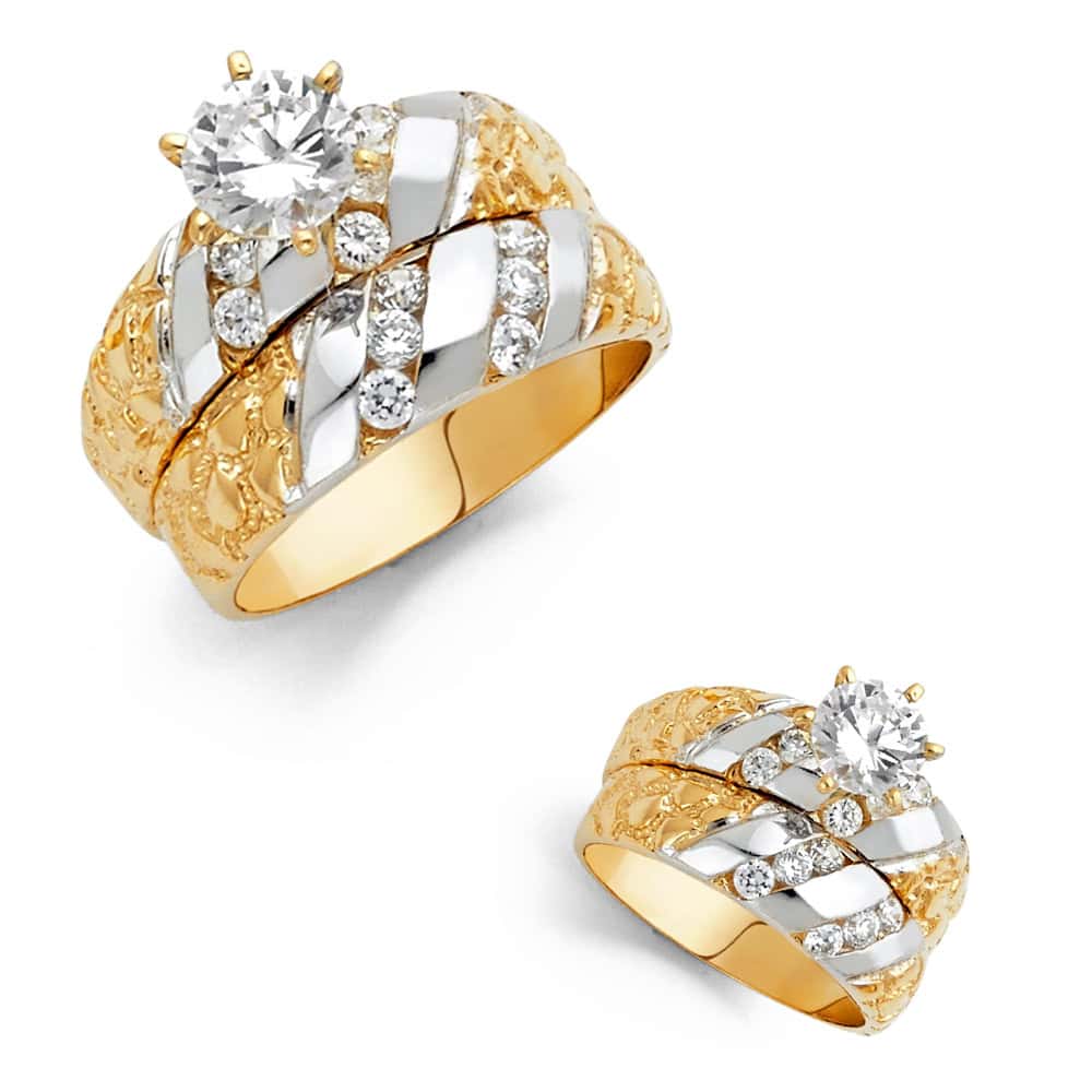 14K Two Tone Gold Cubic Zirconia Engagement Ring and Wedding Band Set