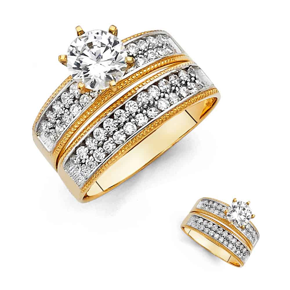14K Two Tone Gold Cubic Zirconia Engagement Ring and Wedding Band Set