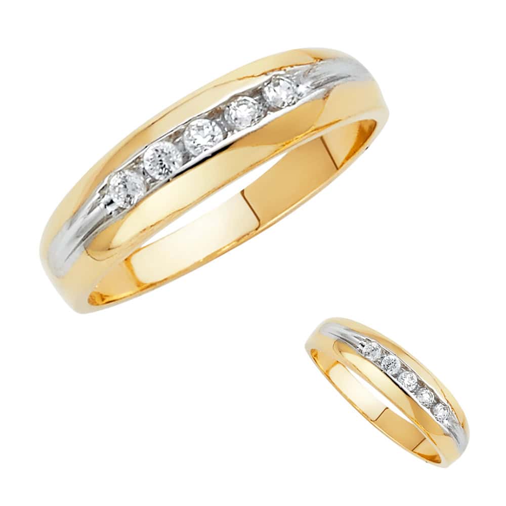 14K Two Tone Gold Cubic Zirconia Men’s Wedding Band