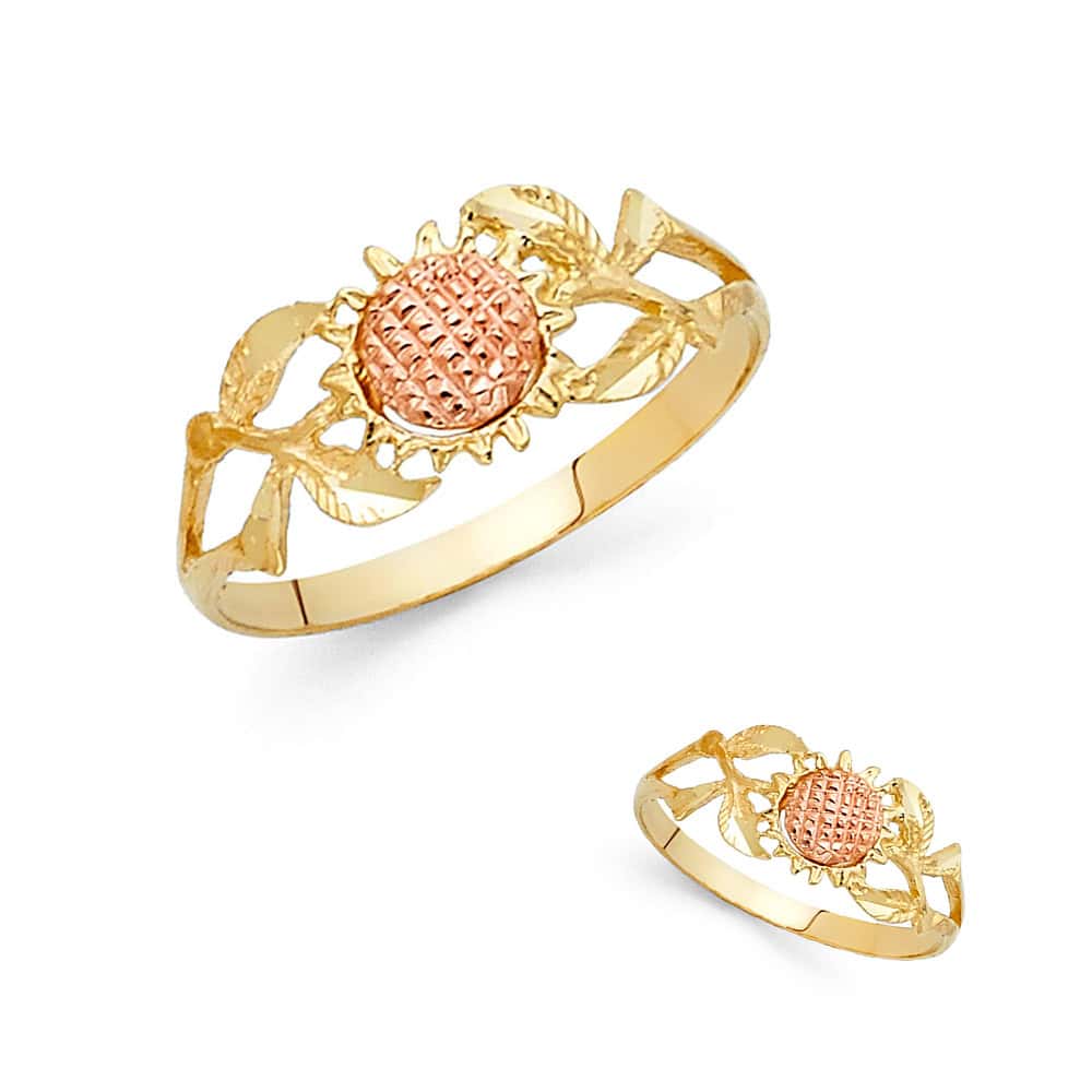 14K Two Tone Gold Fancy Flower Ring