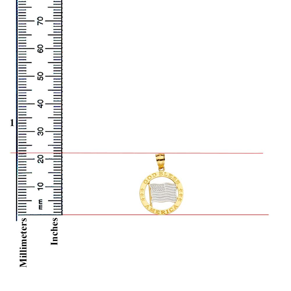 14K Two Tone Gold “God Bless America” Flag Pendant