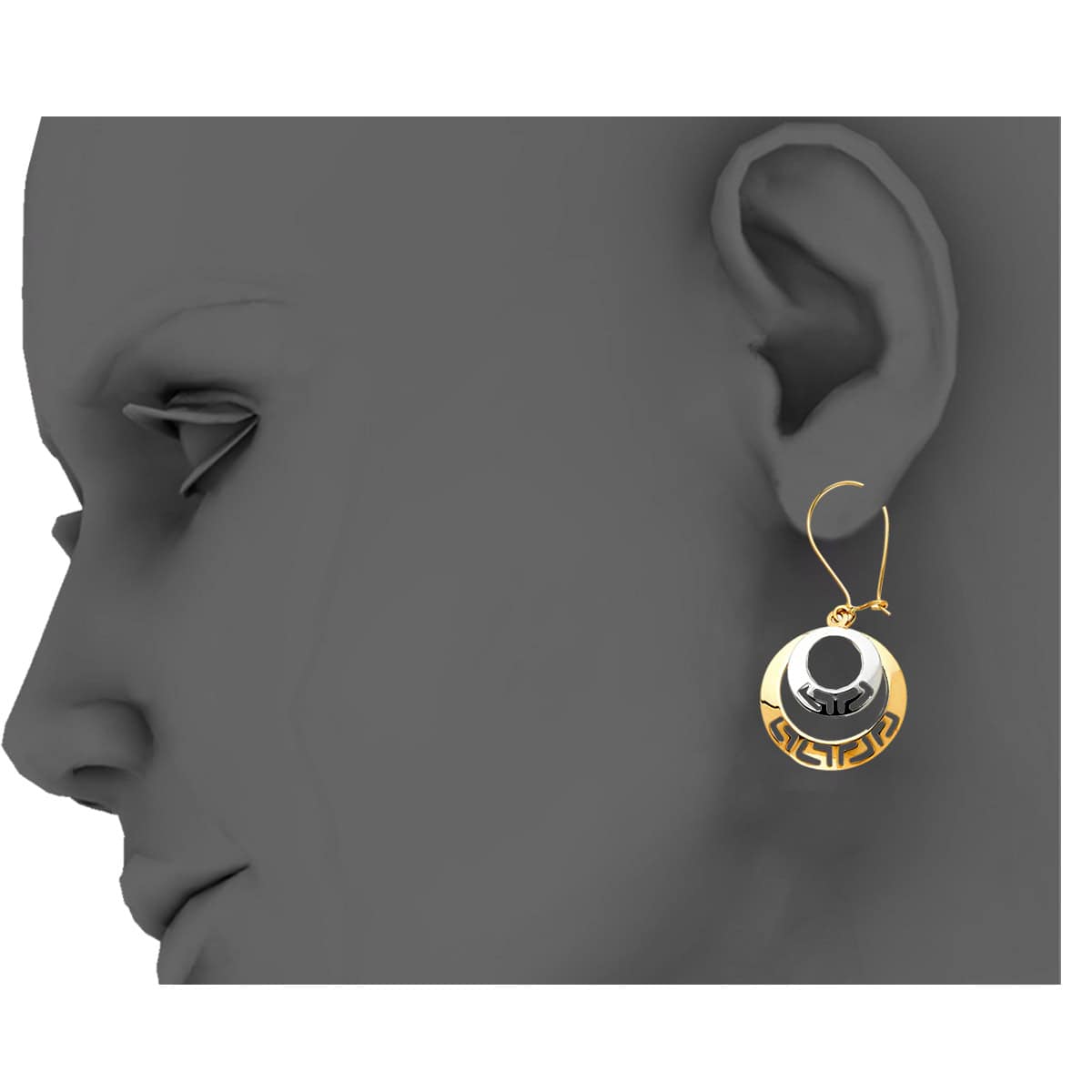 14K Two Tone Gold Greek Cut Out RD Drop Earrings