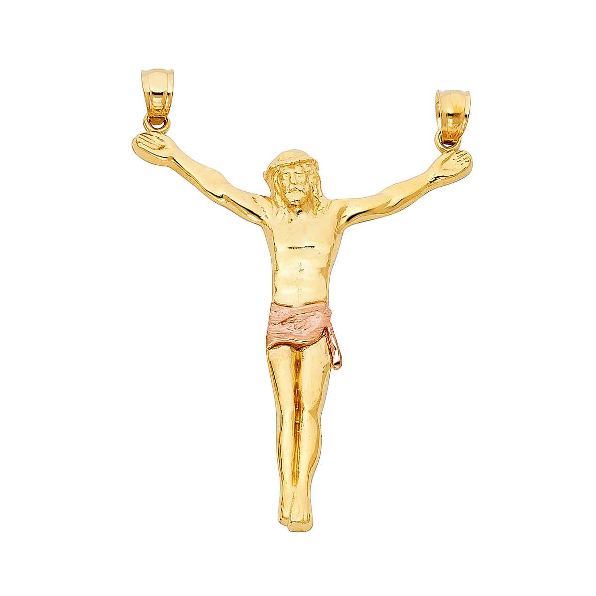 14K Two Tone Gold Jesus Body Crucifix Cross Religious Pendant