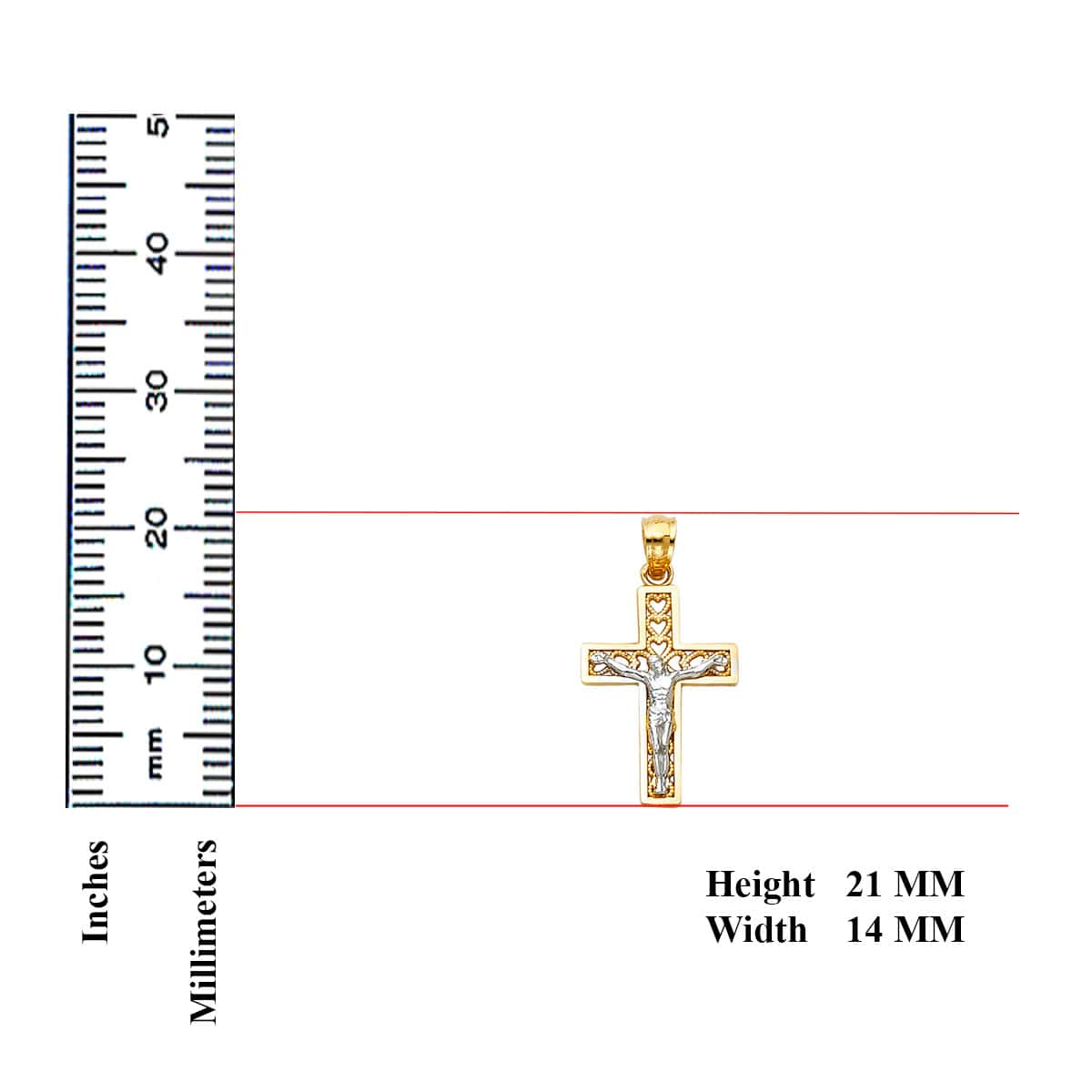 14K Two Tone Gold Jesus Crucifix Cross Religious Pendant