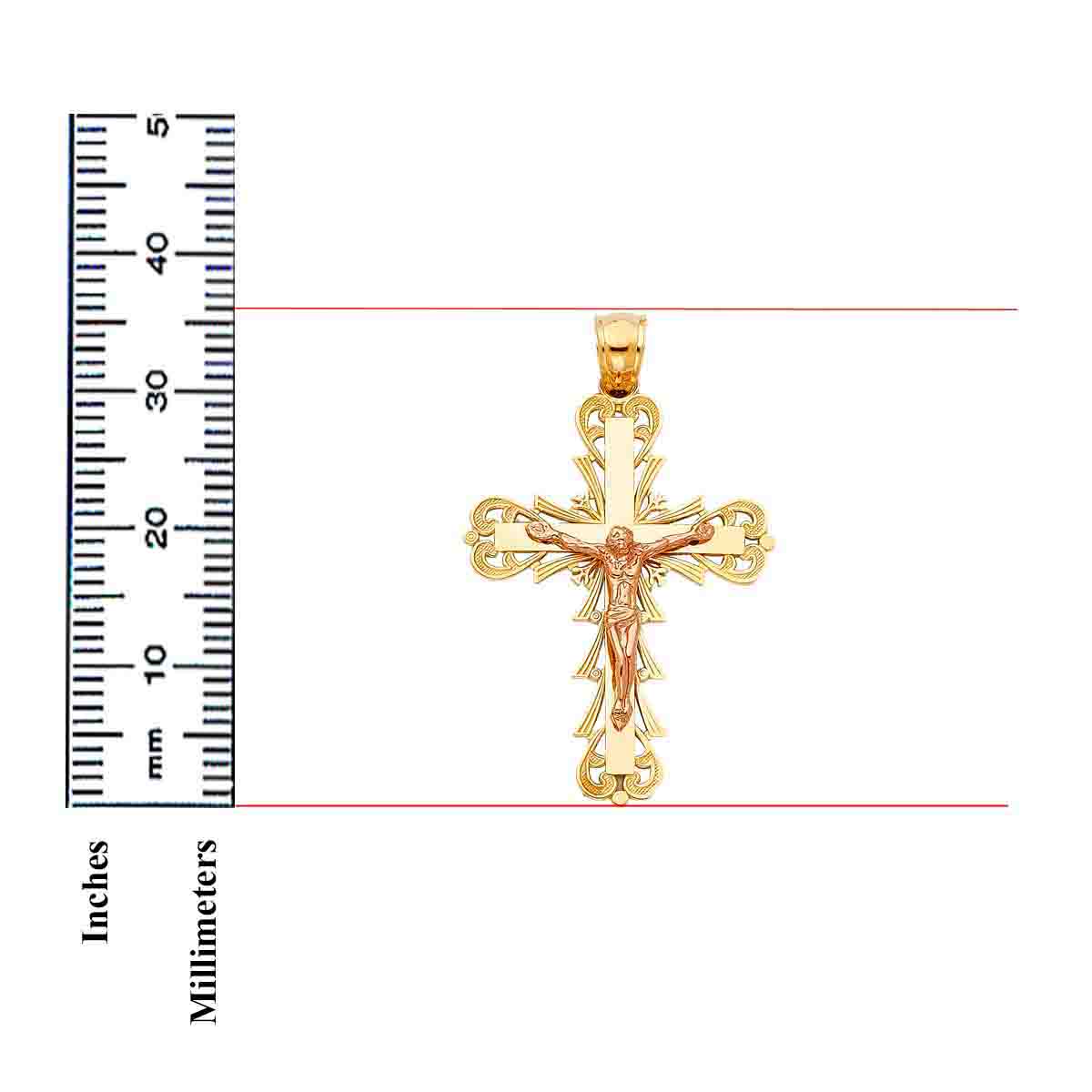 14K Two Tone Gold Religious Crucifix Pendant