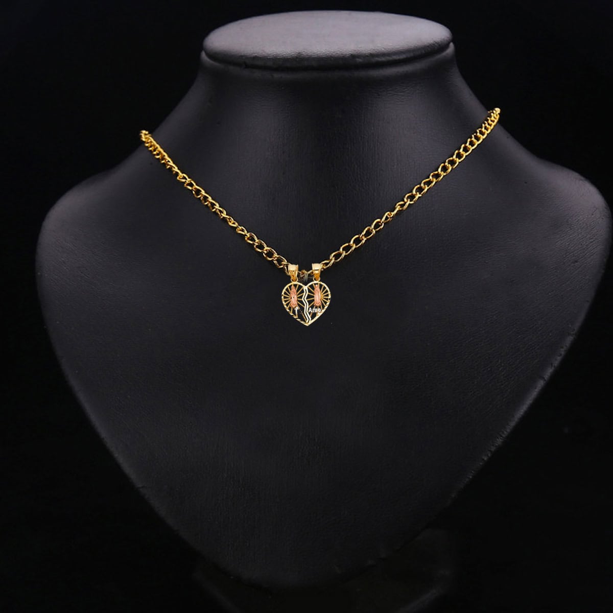 14K Two Tone Gold Religious Guadlupe Broken Heart Pendant